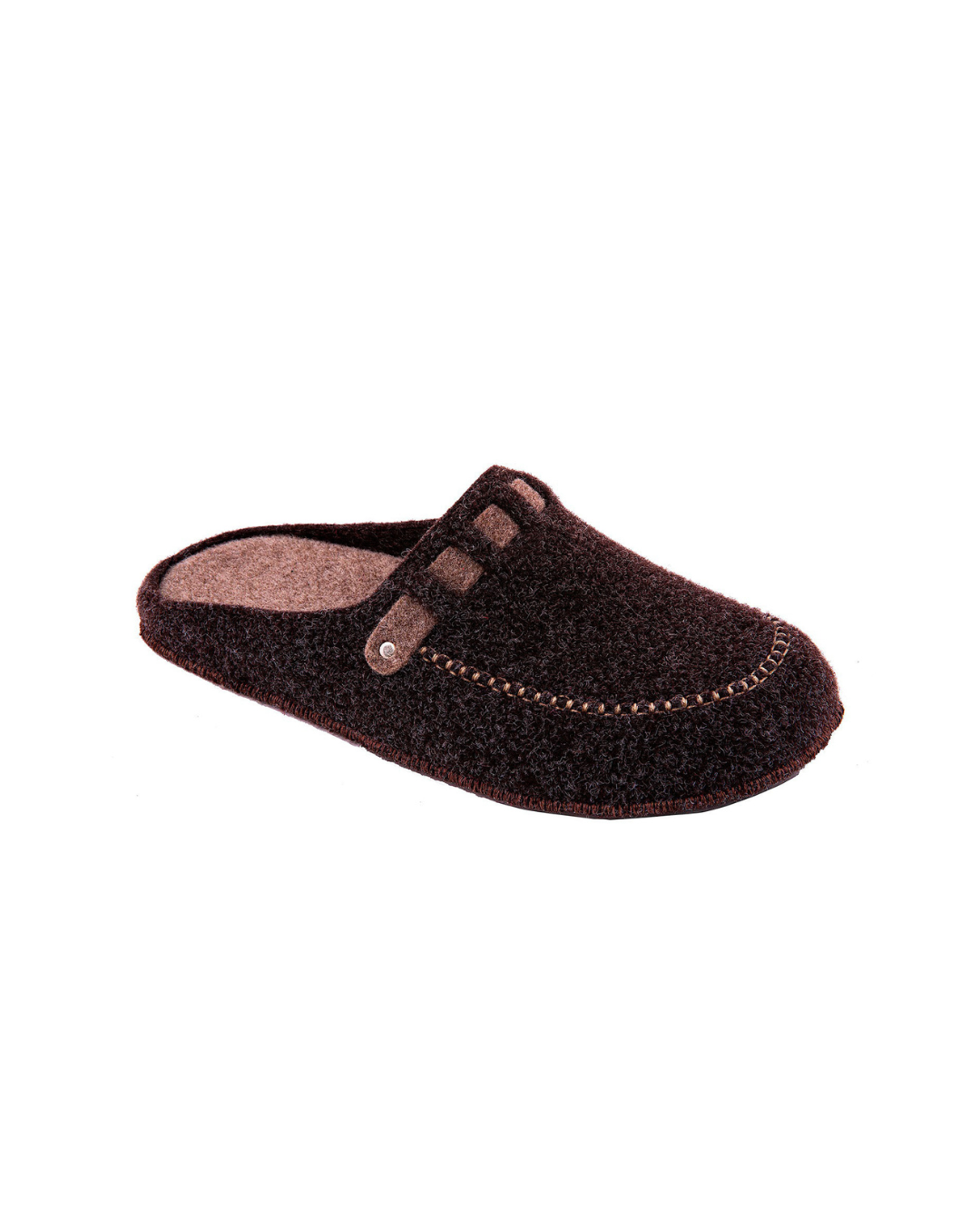 Papuci bărbătești BELSTA, închiși, din velur maro, cu inserție din eco-piele și denumirea fabricii