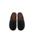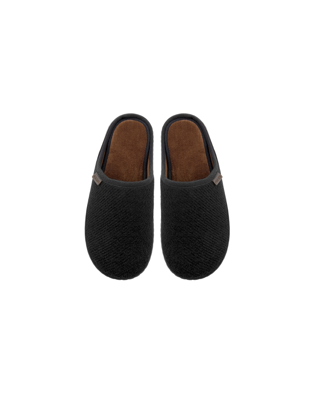 Papuci bărbătești închiși BELSTA din lână neagră, decorați cu logo-ul fabricii.