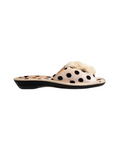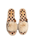 Papuci de damă bej cu imprimeu buline și blăniță decorativă