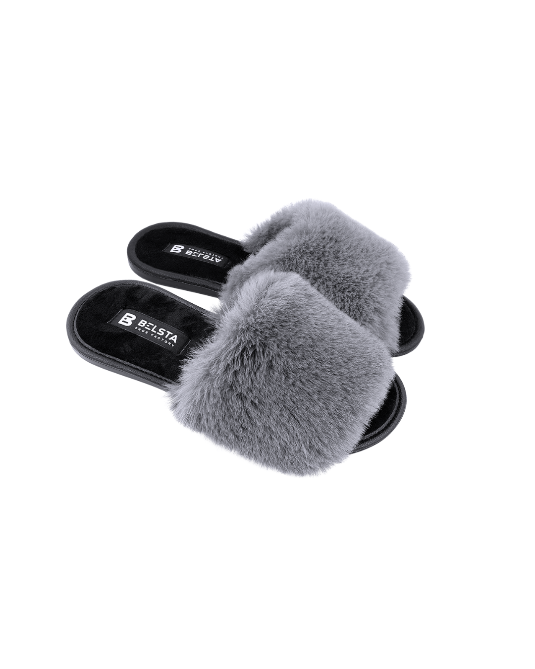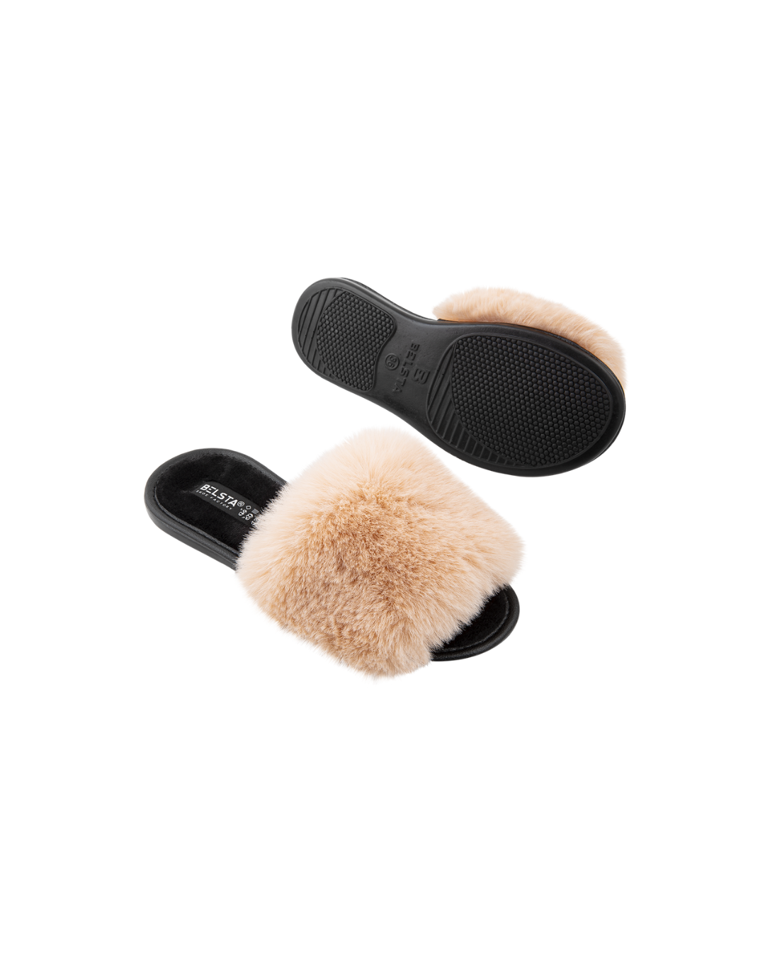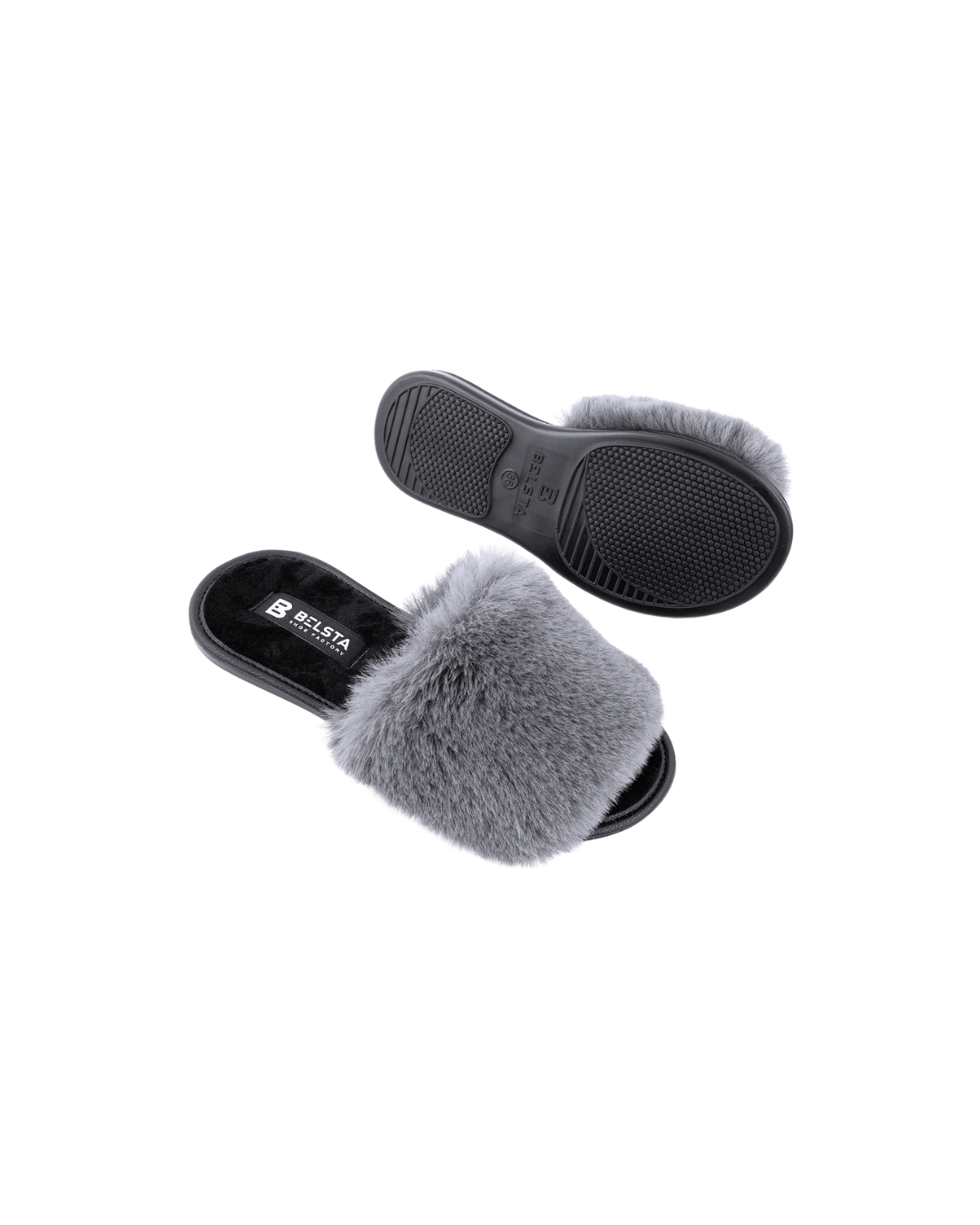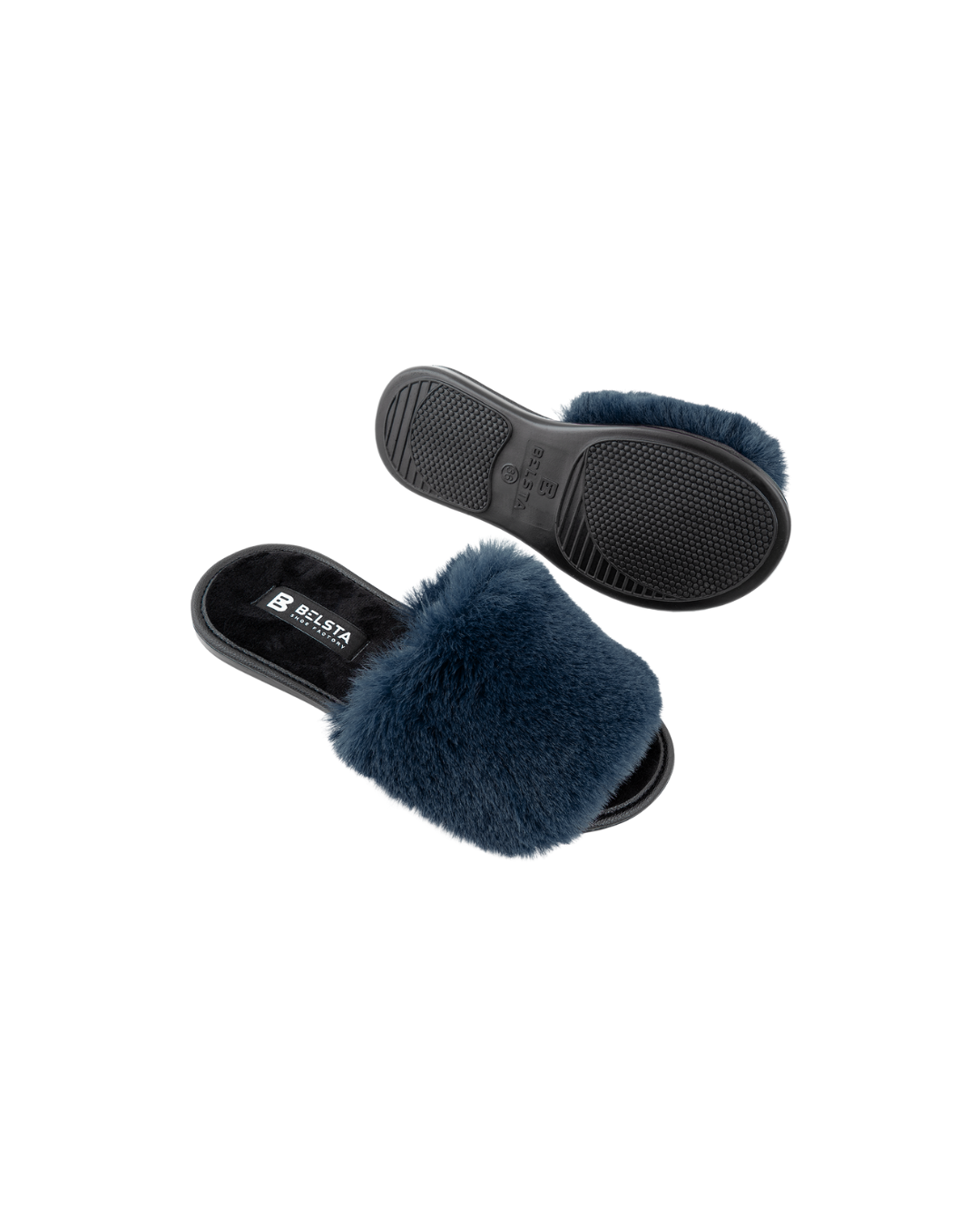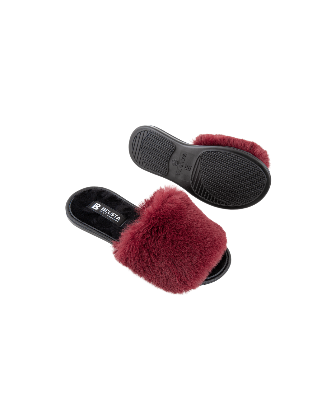 Papuci de damă BELSTA, deschiși, din blană bej; albastru; bordo; roșu; gri.