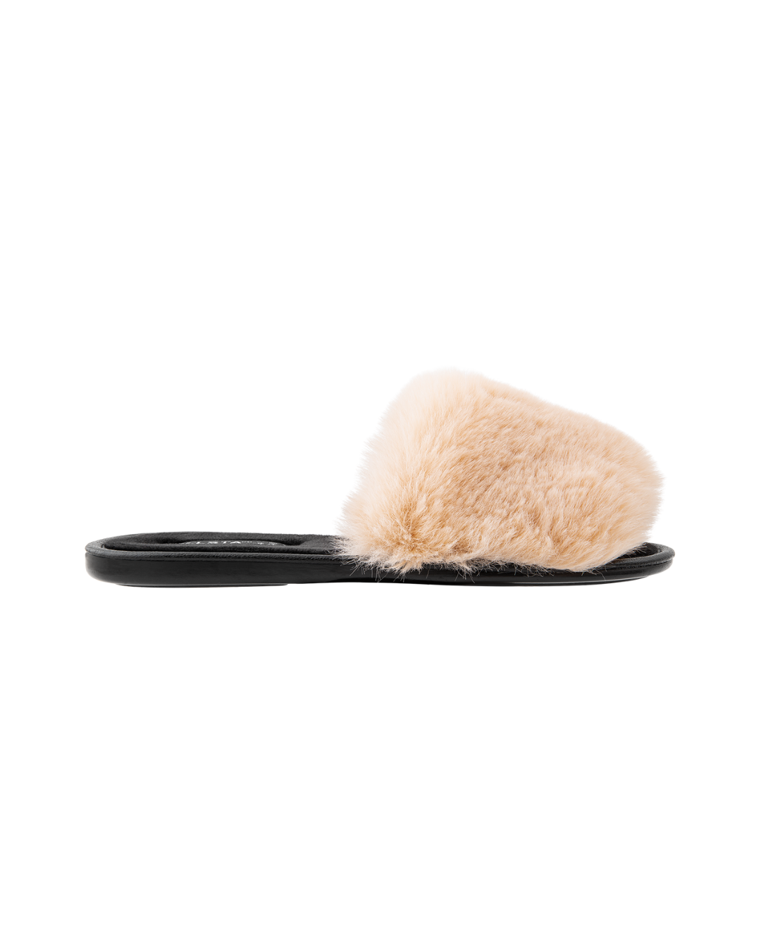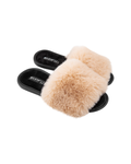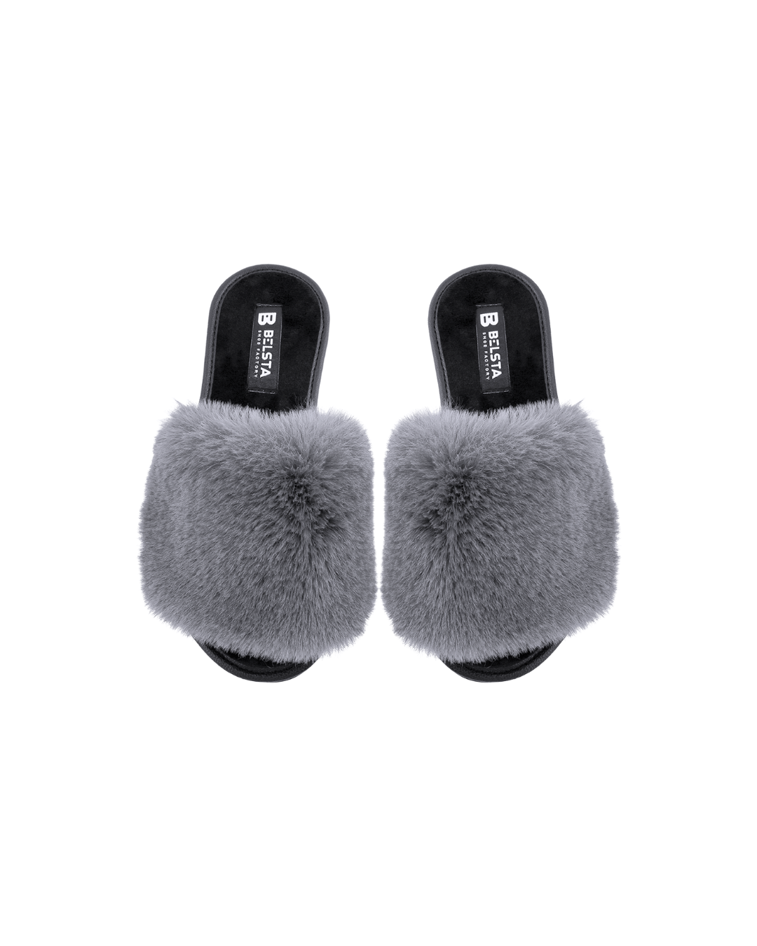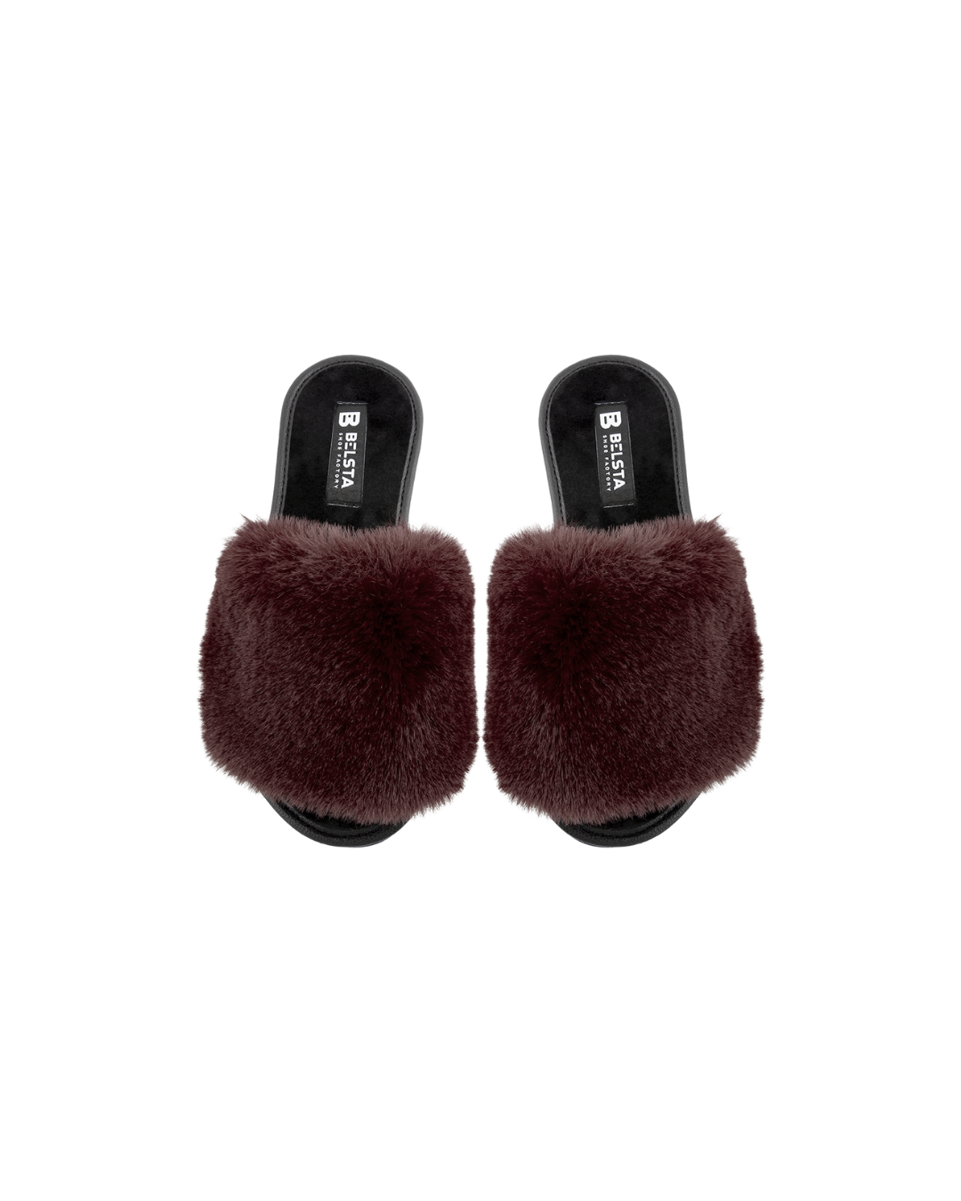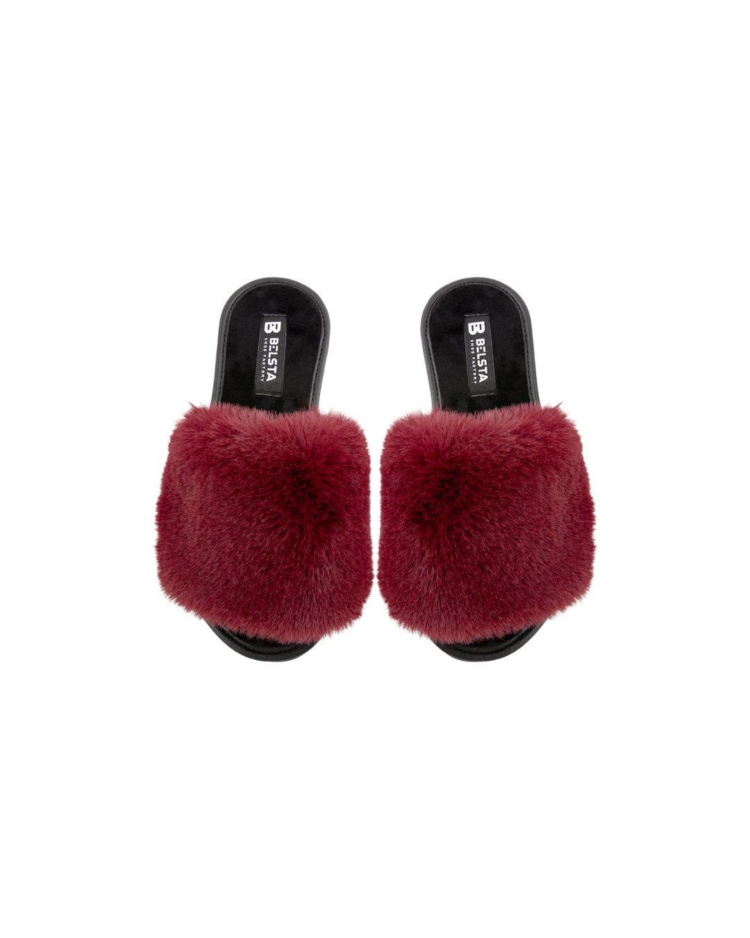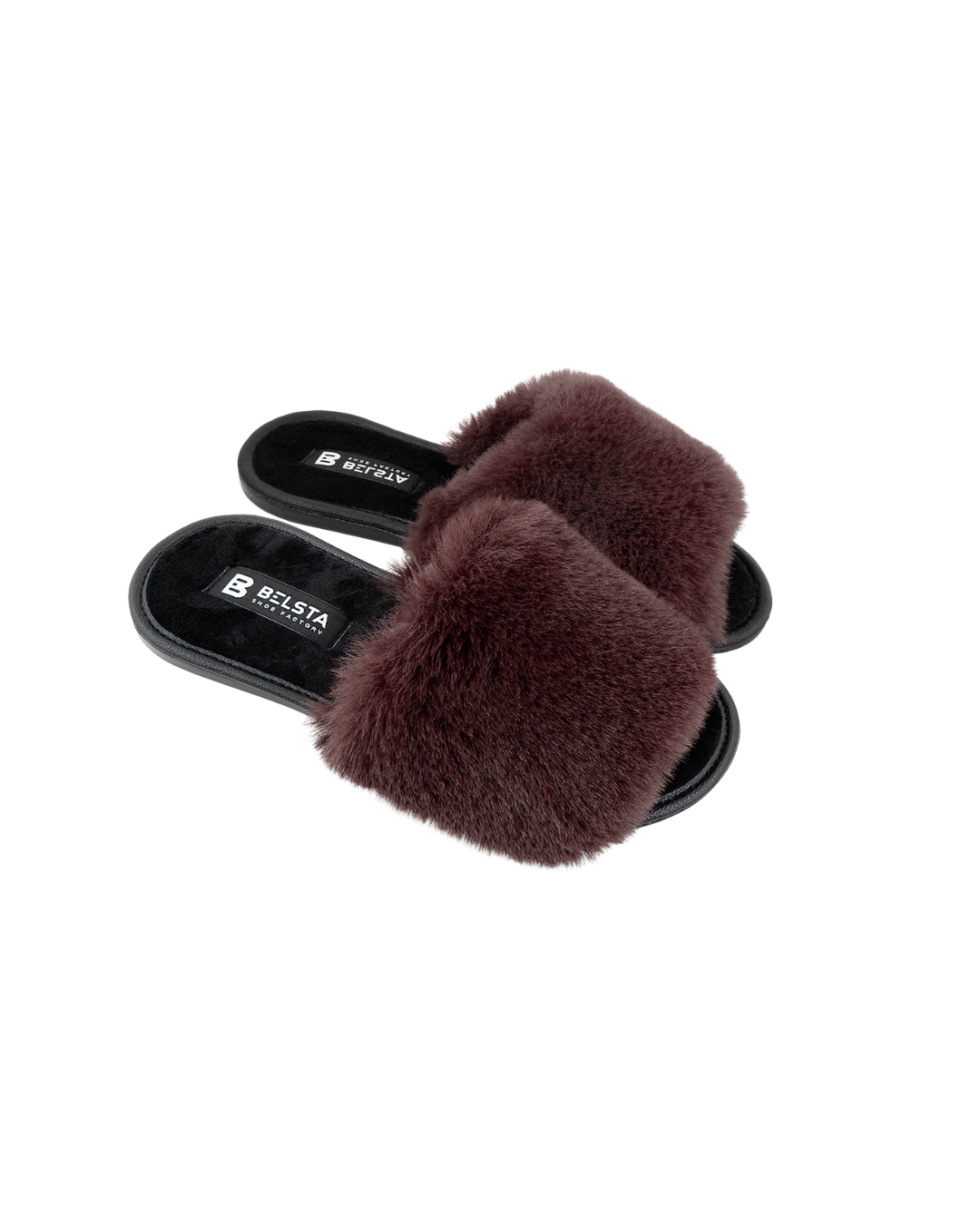 Papuci de damă BELSTA, deschiși, din blană bej; albastru; bordo; roșu; gri.