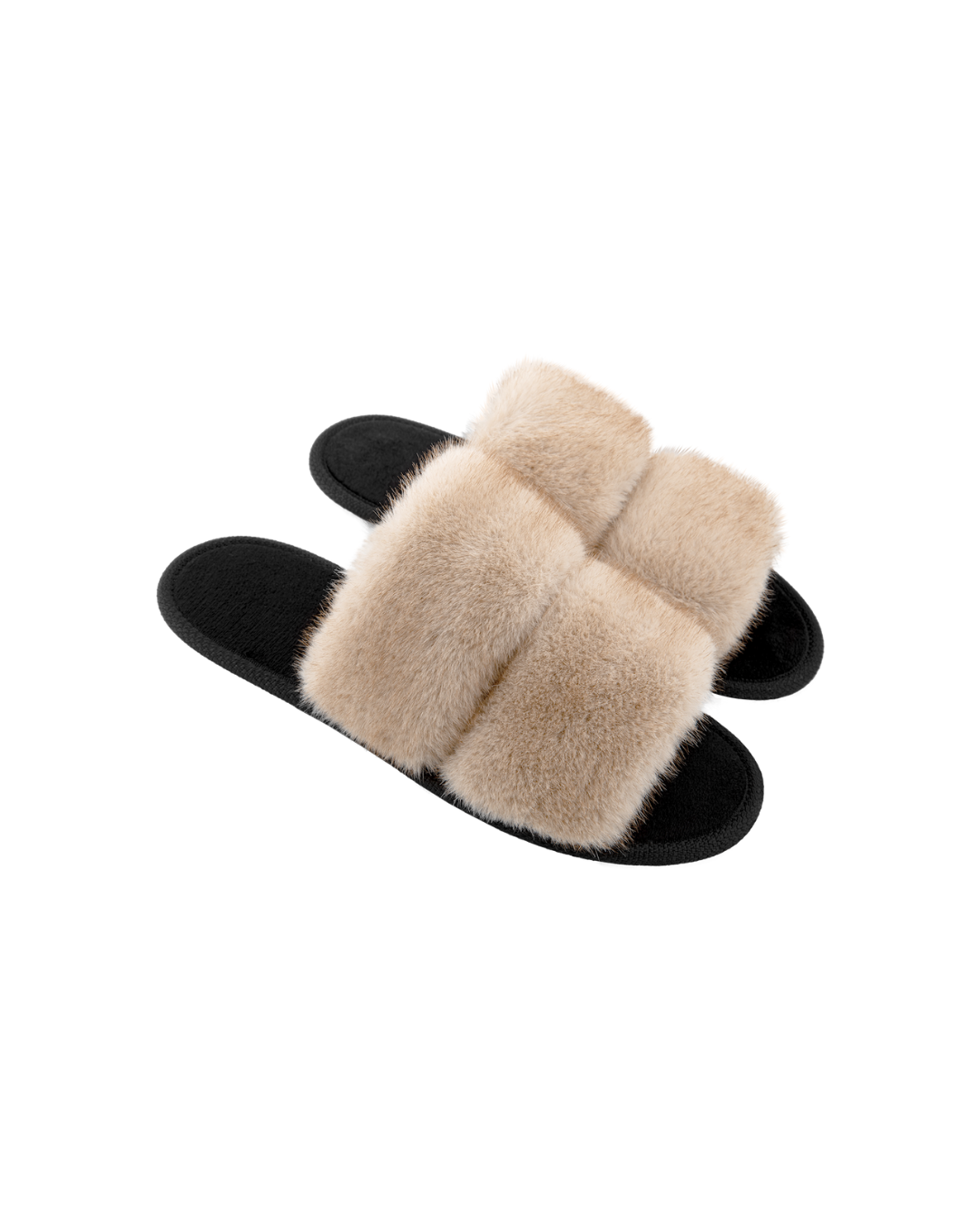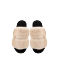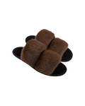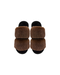 Papuci de damă BELSTA, deschiși, din blană eco bej. maro