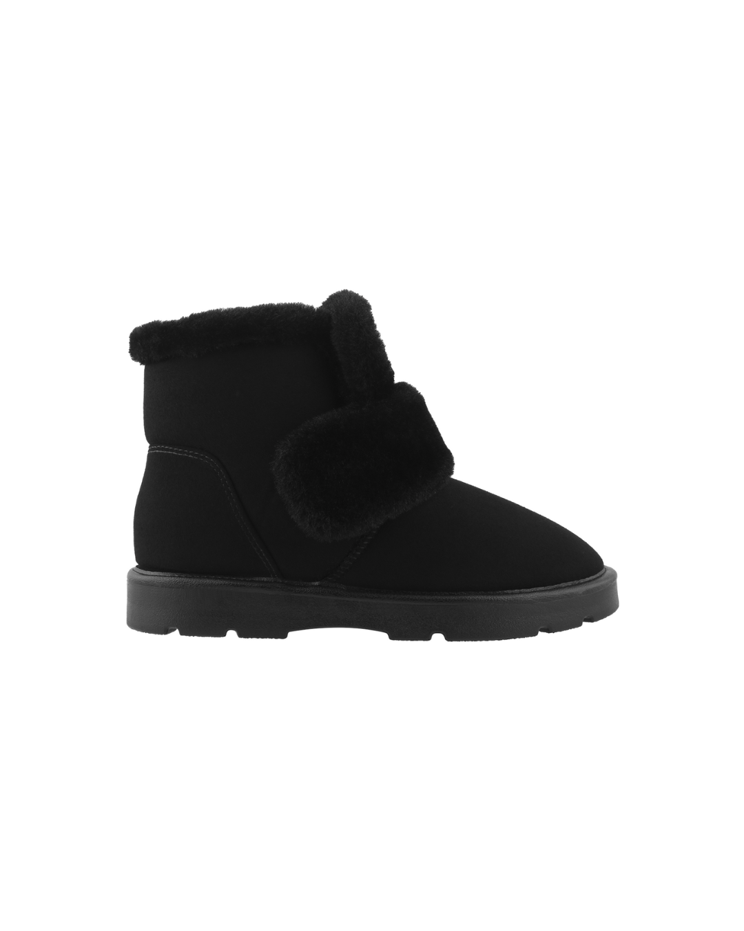 Papuci tip UGG de damă bej; negru din piele întoarsă ecologică cu blană moale